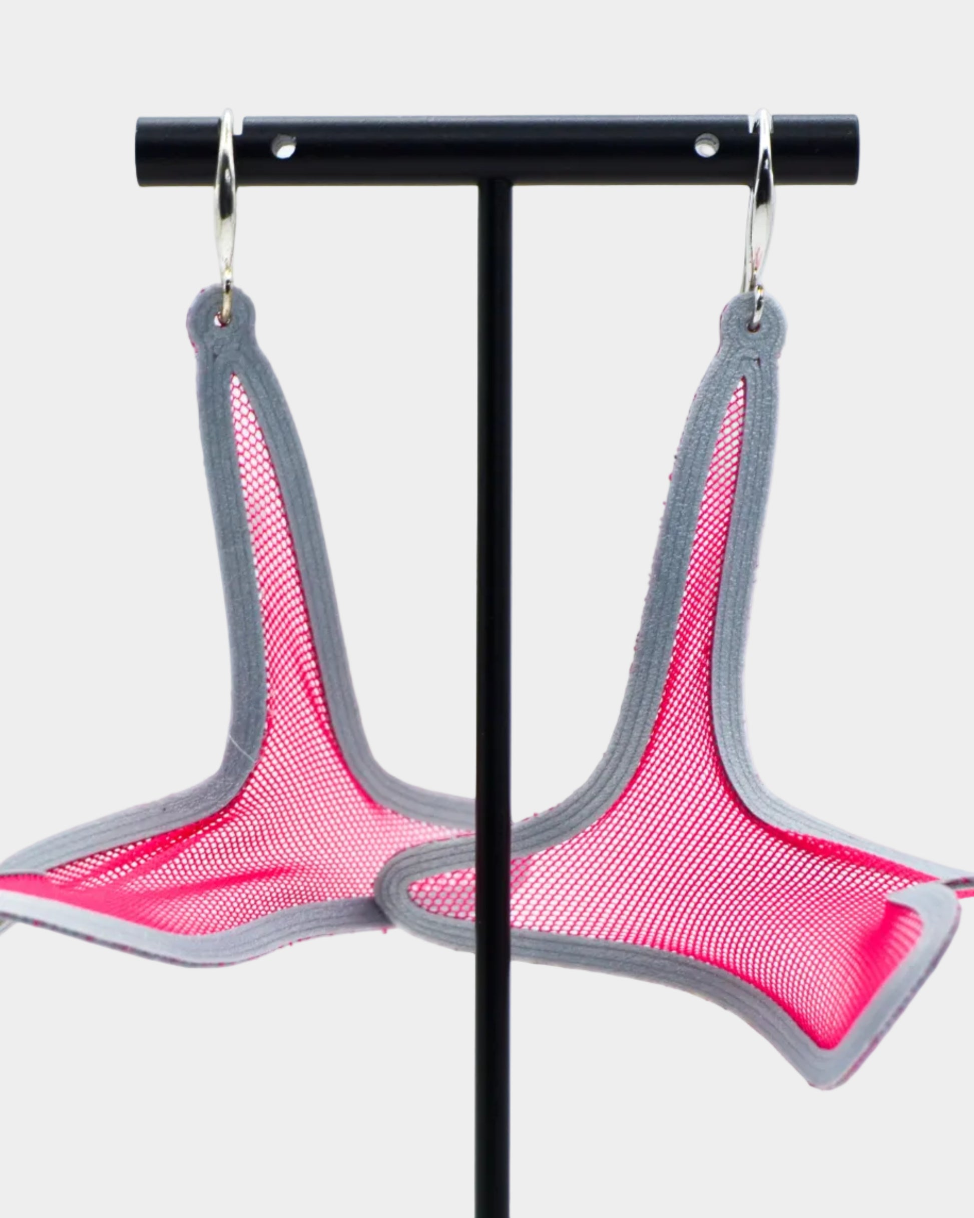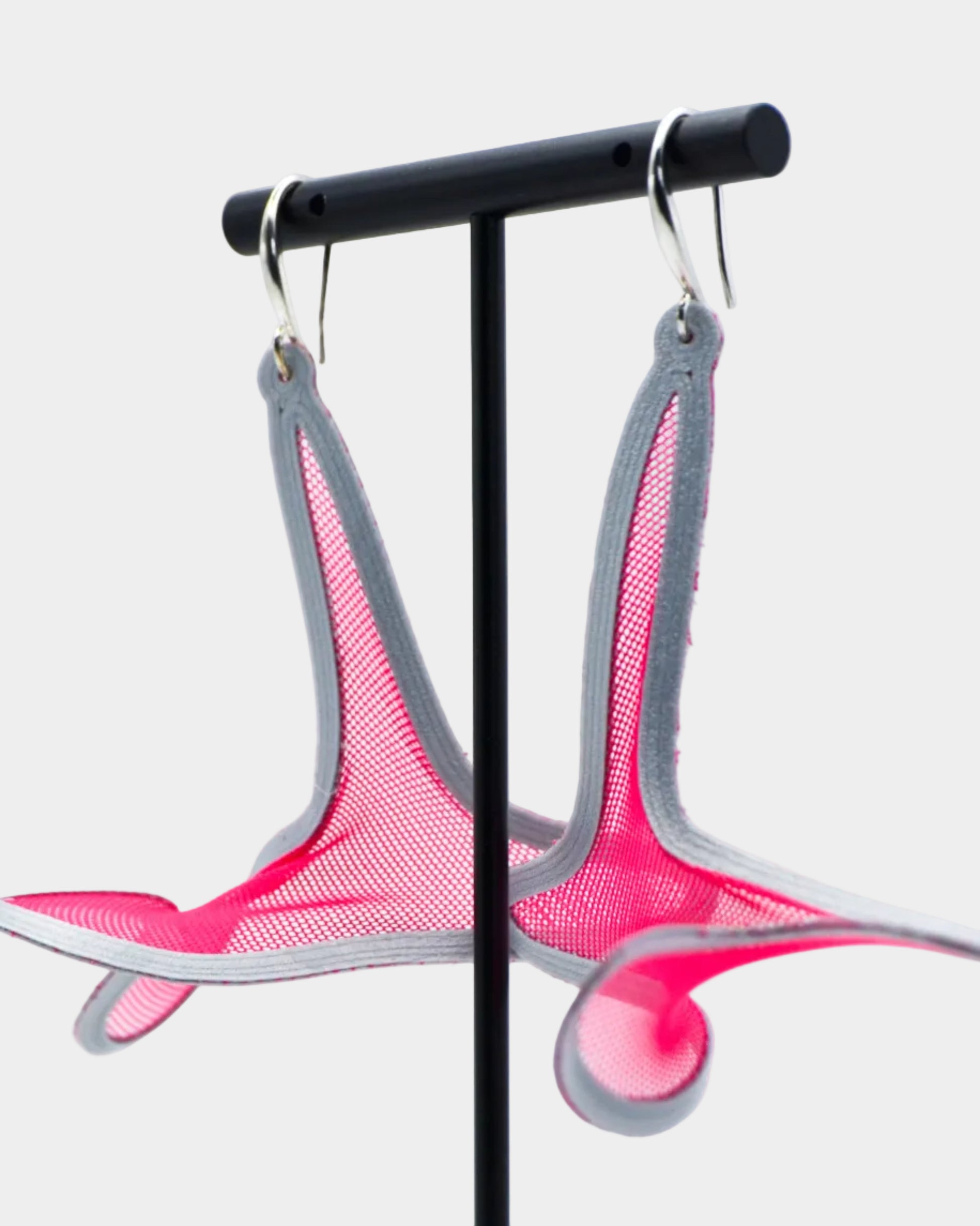 Sculptural earrings, 3D-printed directly onto soft tulle, feather-light, flexible, and designed to move with you.