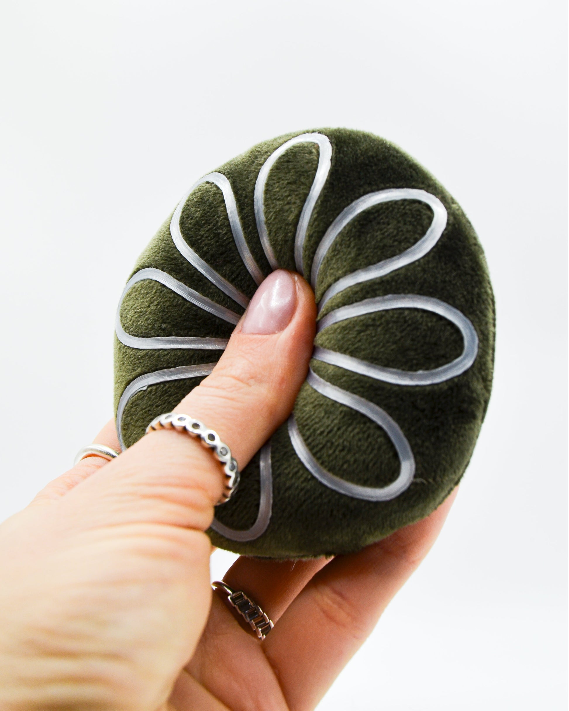 Double Huggle is a double-sided soft interactive object made for quiet fidgeting, to help release restlessness, ground you, or simply give your hands something satisfying to do.